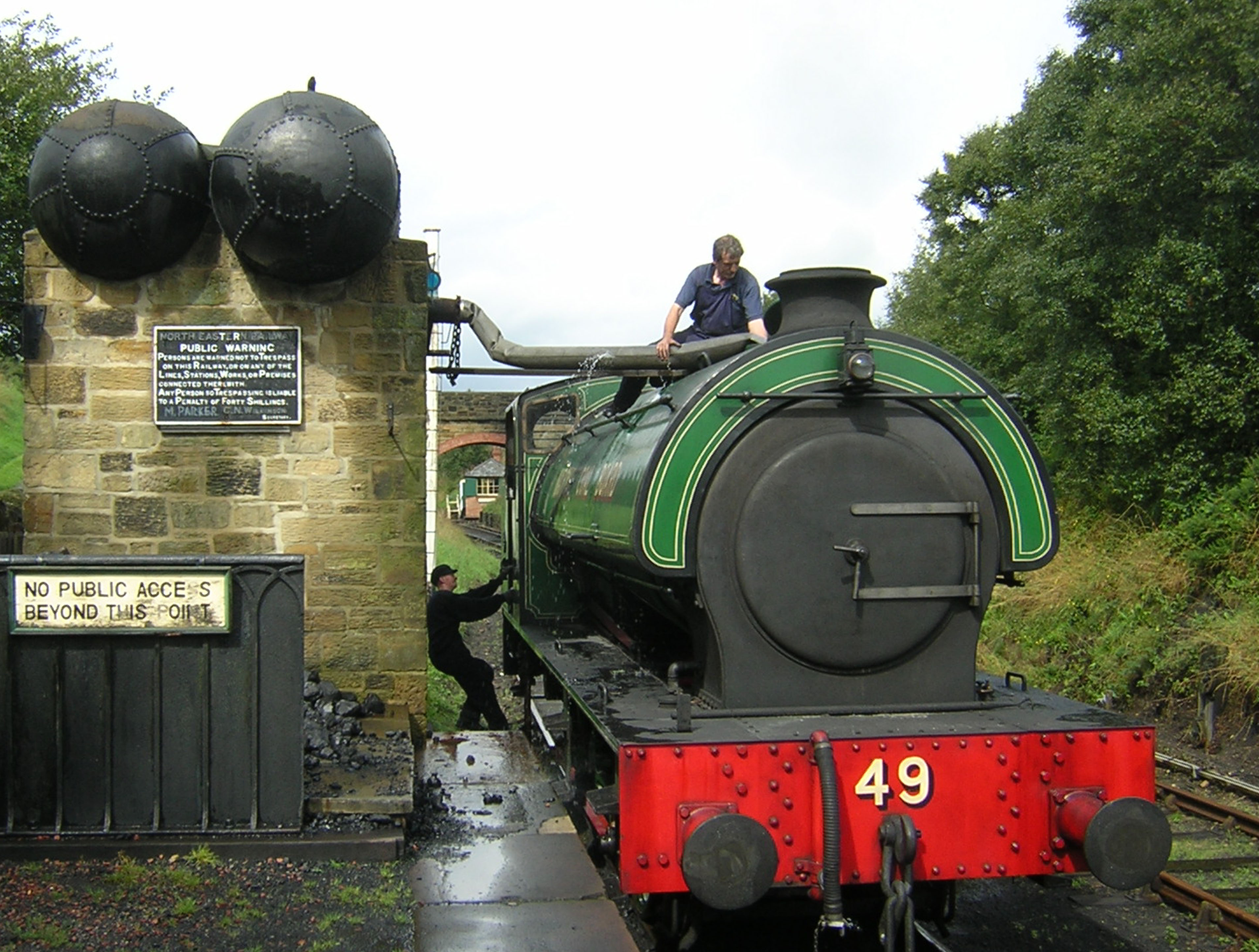 Tanfield Railway 0-6-0ST No 49 Taking water, 18.8.2004. Image: Bryan Cross